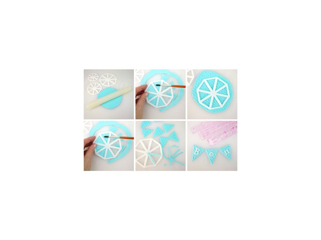 Ez a készlet a marcipánok és fondantok kivágására szolgál. Segítségével egyedi háromszögeket lehet kivágni, amelyek használhatóak zászlóként, vagy akár dekorációként tortákon vagy desszerteken.