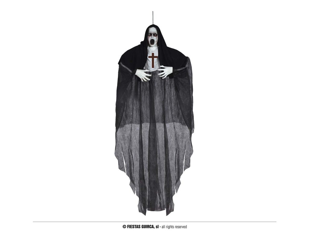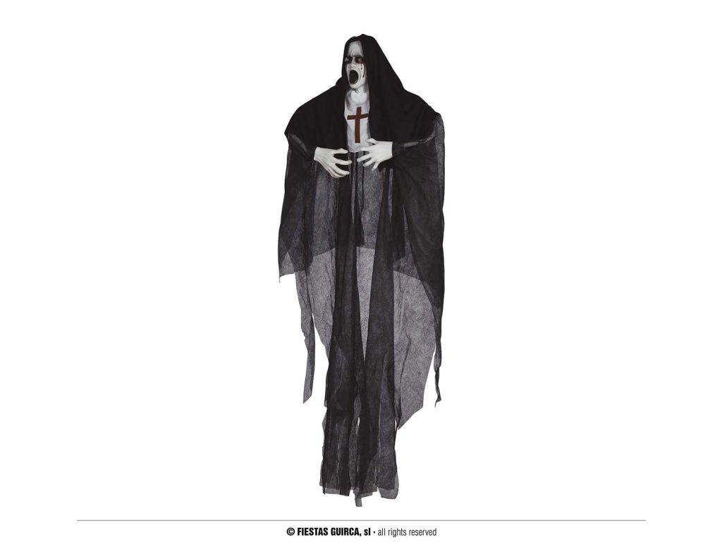 Kísérteties Halloween partit tervez? Teremtsen felejthetetlen hangulatot különféle kísérteties dekorációkkal. Ez az apáca függő dekoráció nagyszerű parti kiegészítő minden Halloween dekorációhoz és az ünnep minden szerelmesének.