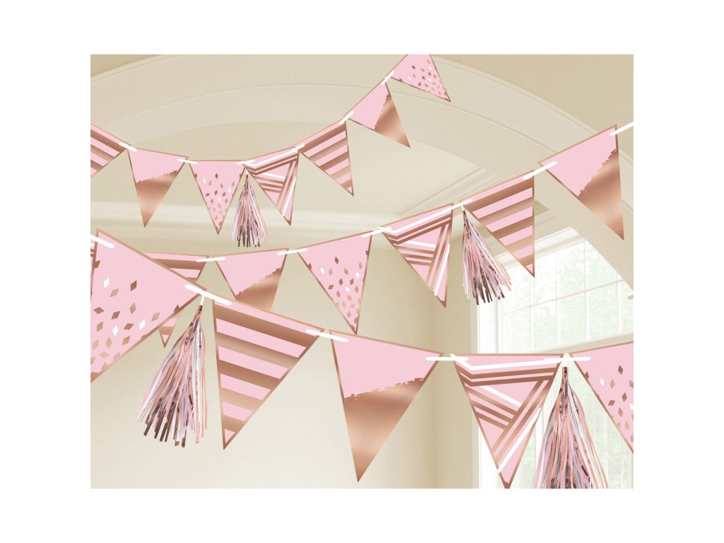 Girland rózsaszín arany bojtokkal