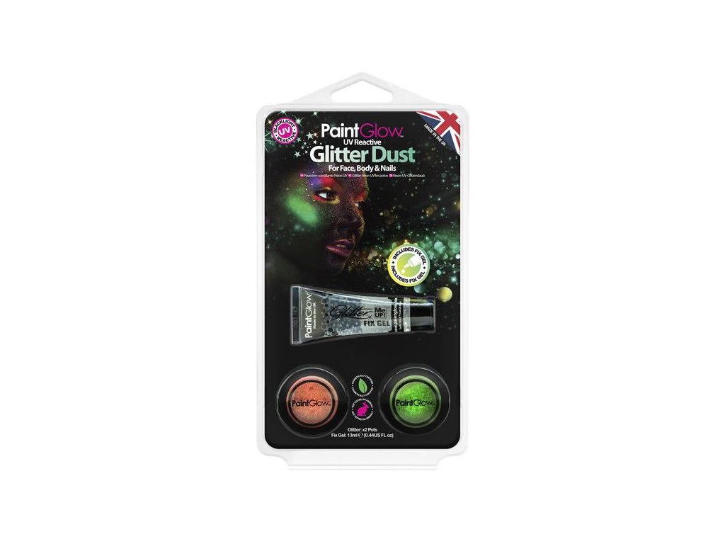 Szeretne magának UV ragyogó és neon party sminket alakítani? Akkor próbálja ki ezt a glitter por szettet. Napközben a színek ragyogó neon színűek lesznek és az UV lámpa alatt gyönyörűen világítani fognak. Segítségükkel az arcra vagy a testre különböző mintákat festhet. A festékek Nagy Britanniában készültek, így biztonságosak és minőségiek, állatokon azokat nem tesztelték.