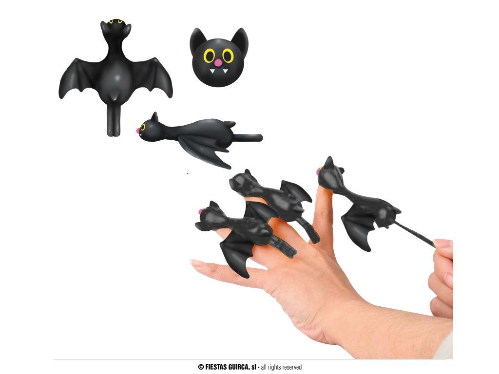 Készüljön fel a kísérteties szórakozásra gumi denevérekkel! Ezek a kicsi, de merész dekorációk tökéletesek Halloween partira, tematikus partikra vagy jelmezek szórakoztató kiegészítőjeként. A puha és rugalmas guminak köszönhetően, amelyből készültek, egyszerűen az ujjaira helyezheti őket, és máris szórakozhat.