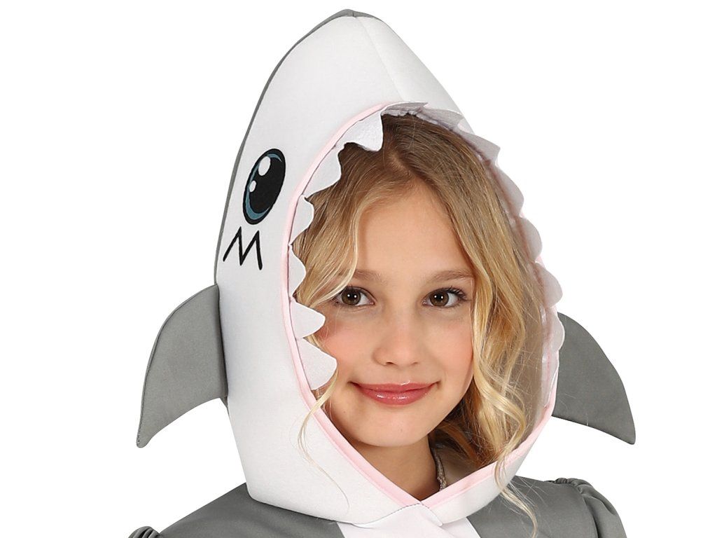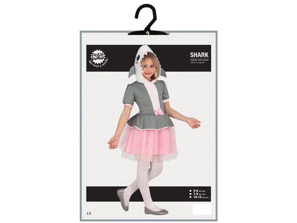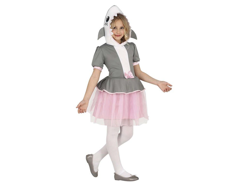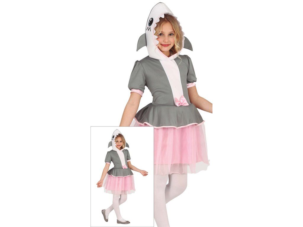 A lány cápa jelmez rózsaszín szoknyával a hagyományos jelmez játékos és aranyos változata. Ez a jelmez a tengeri világ szórakoztató elemeit ötvözi lányos és vidám megjelenéssel. Ideális különféle alkalmakra, például karneválokra, iskolai előadásokra vagy tematikus partikra.