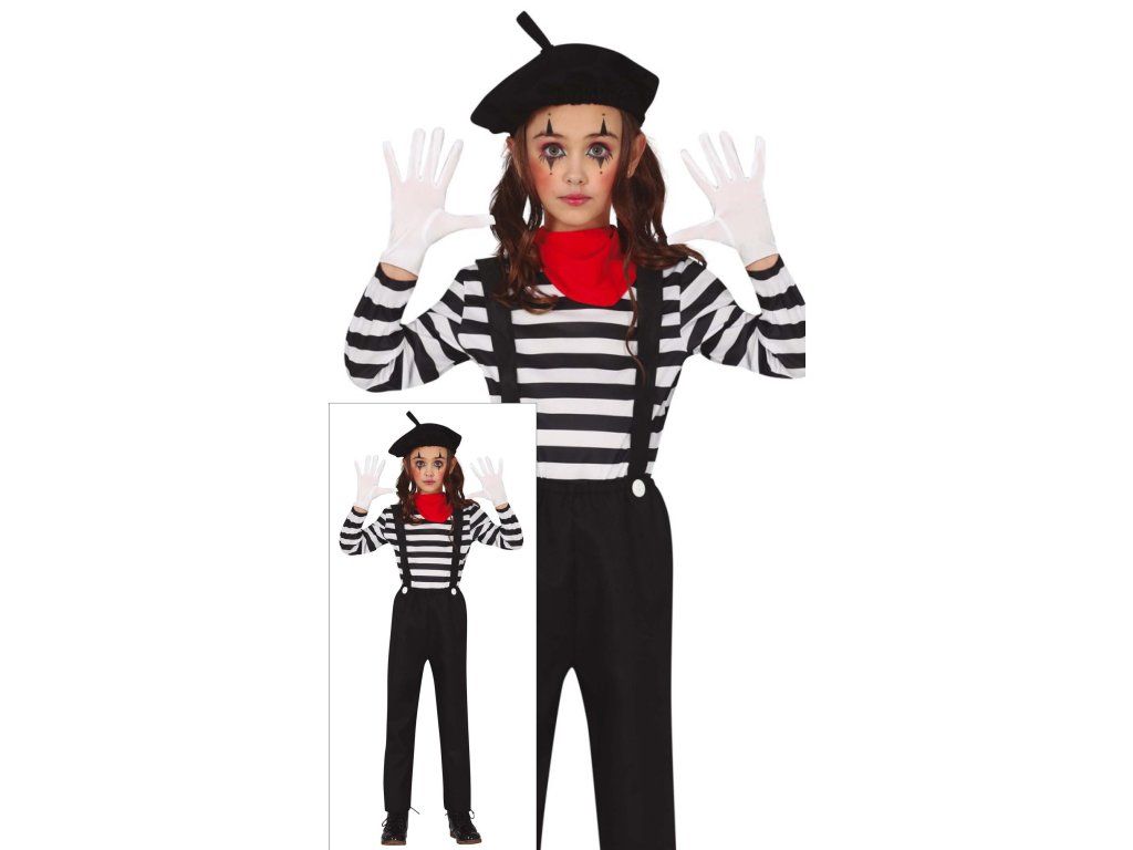 A lány pantomim jelmeze elegáns és egyedi választás kis művészek számára, akik megjelenésükkel és varázsukkal szeretnének lenyűgözni. Ez a jelmez a klasszikus pantomimek ikonikus elemeit ötvözi, hogy tökéletes ruhát alkosson farsangra, tematikus partikra vagy Halloween partira.