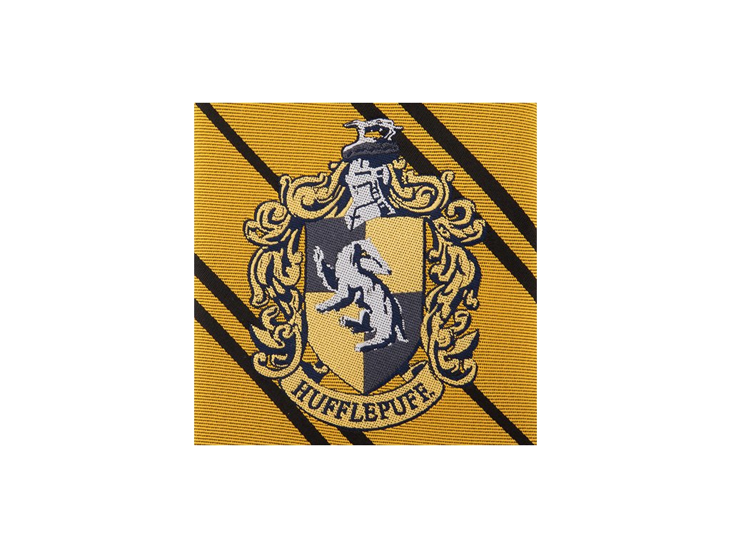 Elegáns nyakkendő Hugrabug ház színeiben. Ez a nyakkendő Hugrabug ház címer díszítéssel kívaló kiegészítő lesz minden Harry Potter rajongó nyakában