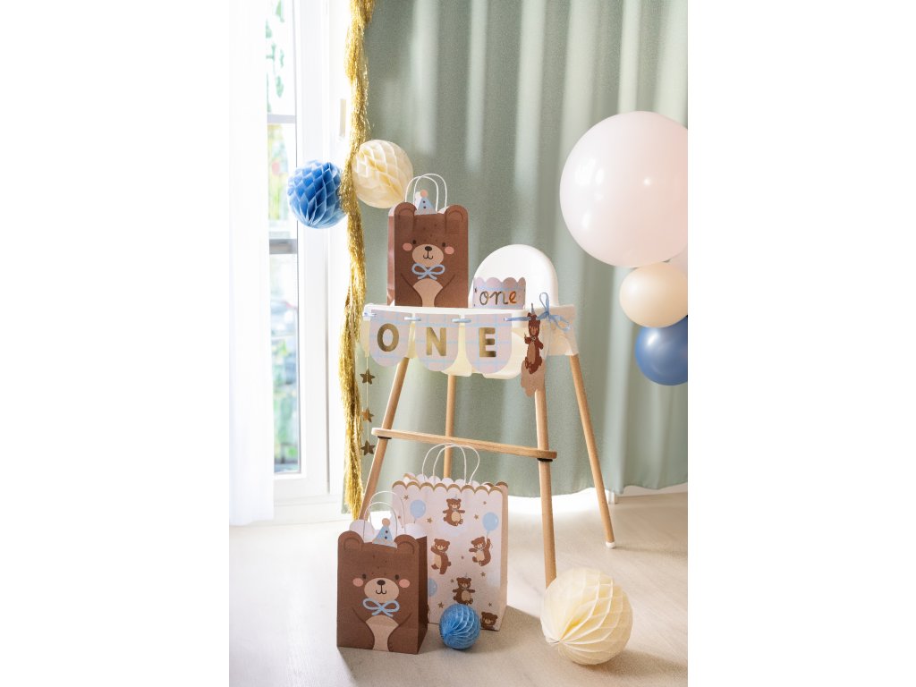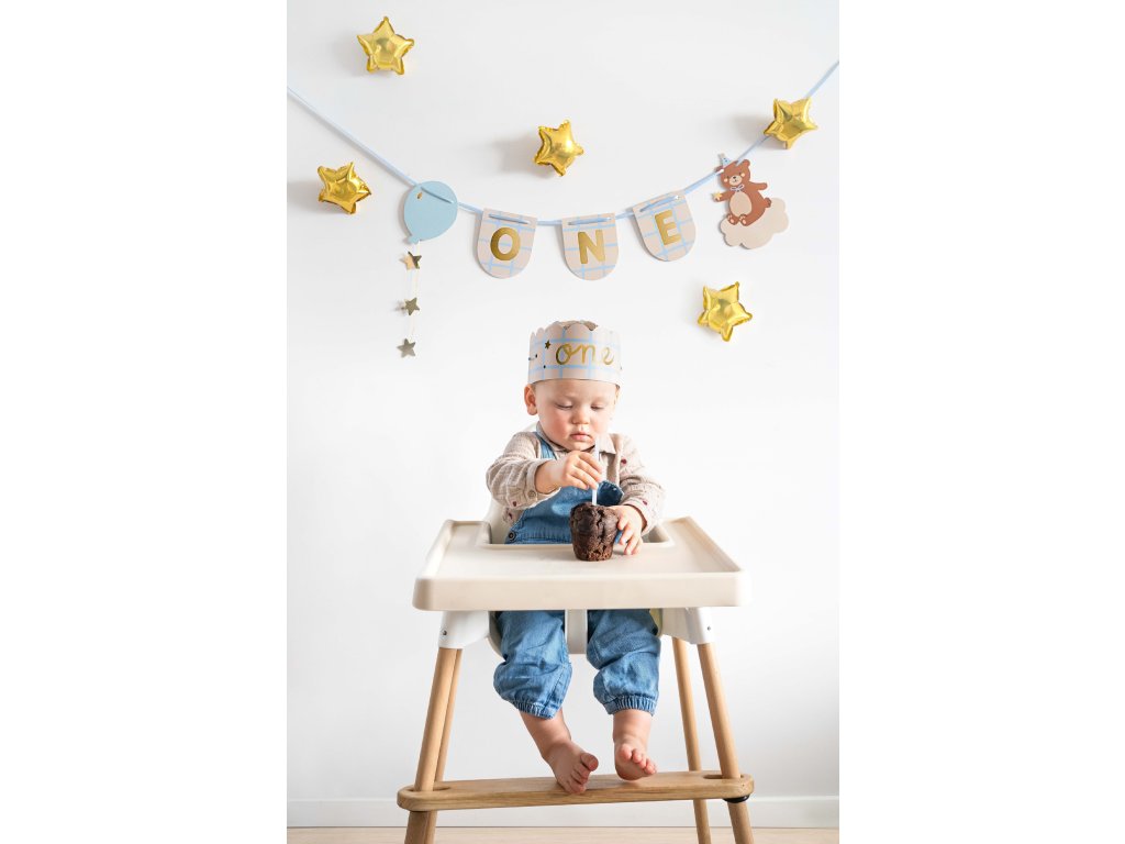 Ünnepelje meg kis kincse első születésnapját ezzel az aranyos Mackó party szettel! A szett tartalmaz egy székre rögzíthető bannert és egy koronát az ünnepelt számára, amelyek ünnepségükhöz kedves, játékos és felejthetetlen hangulatot kölcsönöznek. Tökéletes választás az első évforduló ünnepléséhez, fotózásokhoz és tematikus partikhoz. Tegye az első születésnapot felejthetetlenné olyan részletekkel, melyek a szülőket és a gyerekeket is lenyűgözik!