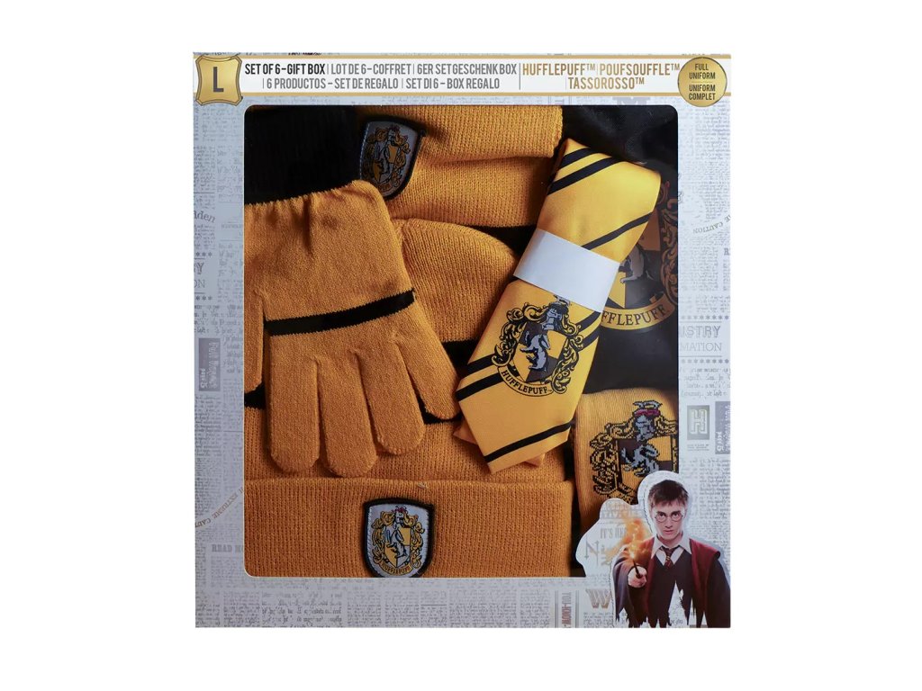 A Harry Potter Hugrabug készletével igazi varázsló leszel! A készlet tartalmaz egy replika köpenyt, nyakkendőt, sálat, sapkát, kesztyűt és zoknit. A készlet mindent tartalmaz, ami a varázsló élet megkezdéséhez szükséges a Roxfortban.