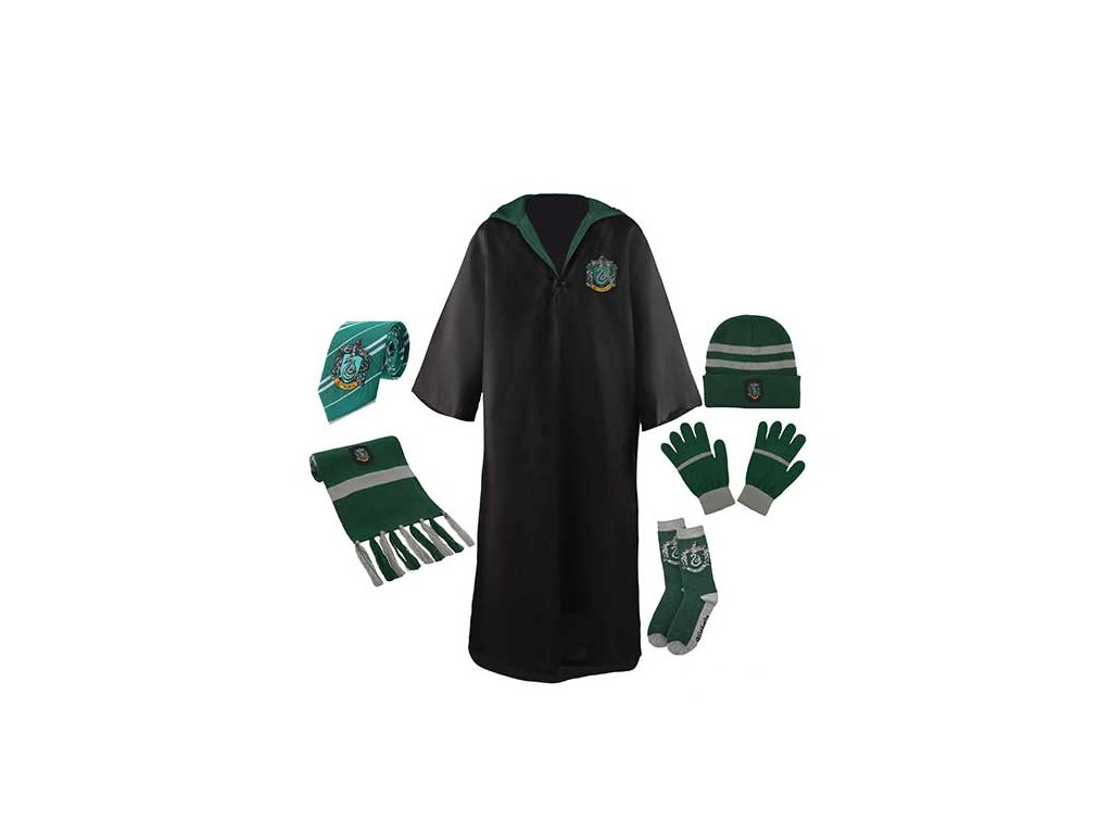 A készlet a Mardekár ház erbjét tartalmazza, ezzel a film Harry Potter igazi varázslója lehetsz! A szett tartalmazza a köppenyt, nyakkendőt, sálat, sapkát, kesztyűt és zoknit. A szett tartamalmaz minden fontos kiegészítőt, amely a Rokfort varázsló világban a Mardekár házban fontos lesz.