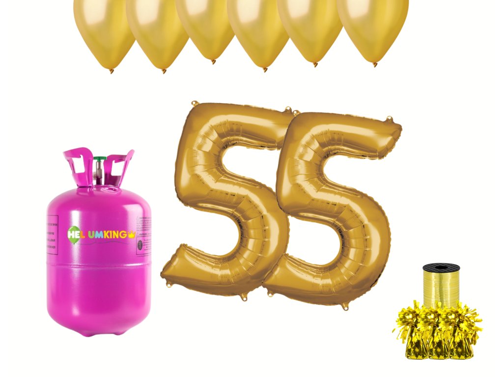Hélium parti szett 55. születésnapra arany színű lufikkal