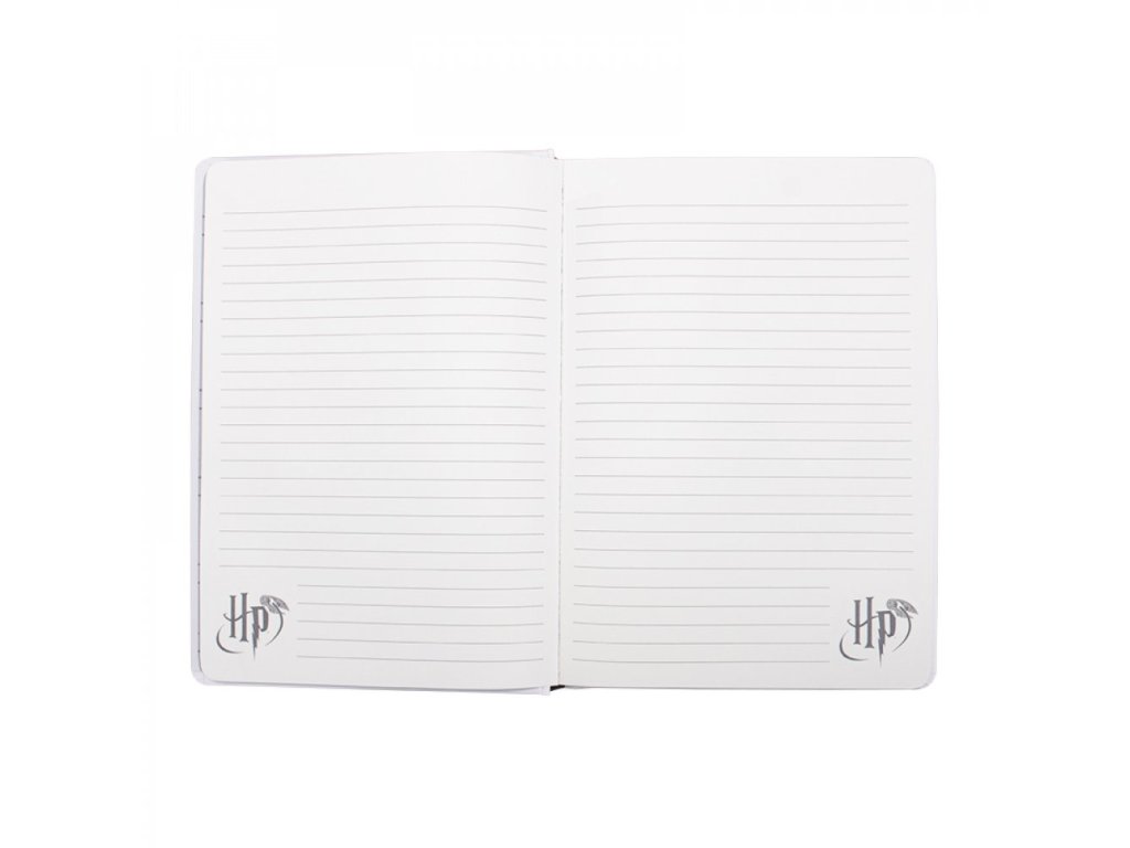 Ez a Harry Potter jegyzetfüzet kemény fedéllel van ellátva, vonalas lapokat tartalmaz. Ideális ajándék minden Harry Potter rajongó számára különböző bűbájok jegyzetére.
