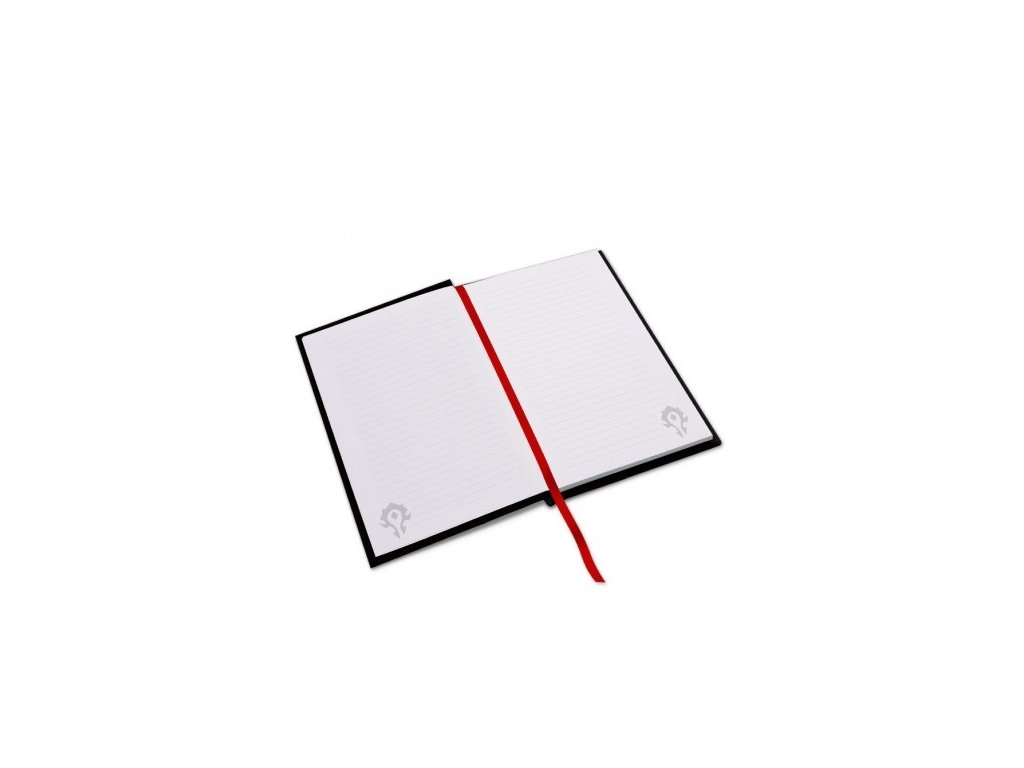 Kemény kötésű vonalas jegyzetfüzet a World of Warcraftból ismert Horde logóval ellátva.