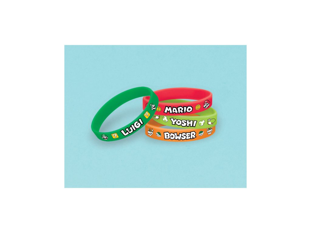 Minden egyes karkötőn az egyes figurák neve van feltüntetve a legendás játékból Szuper Márió.