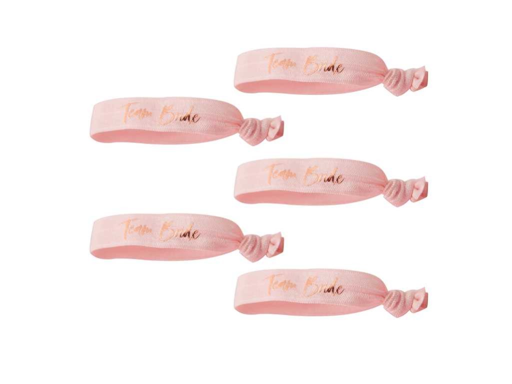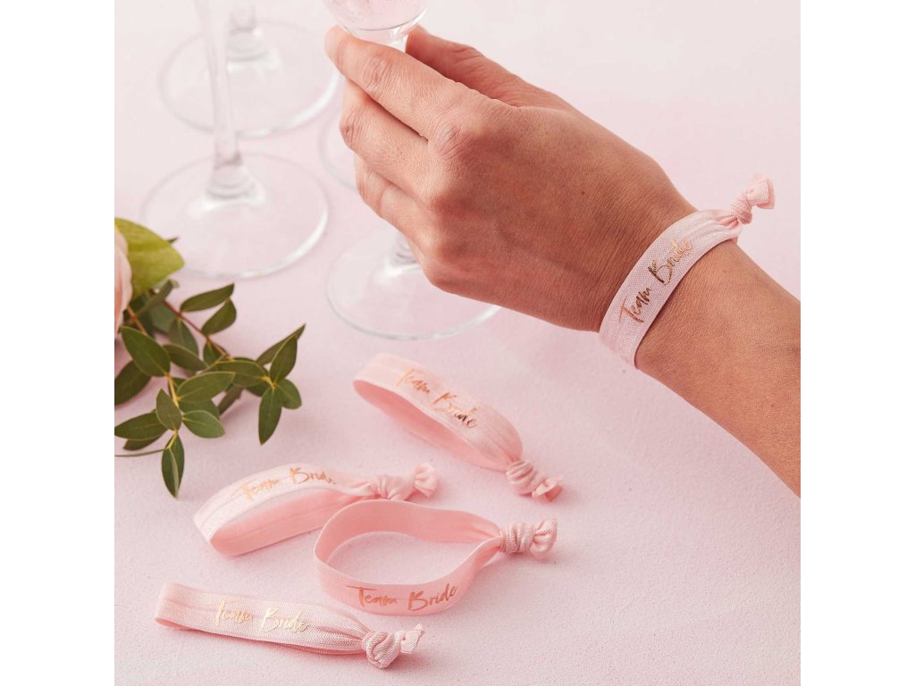 Győződjön meg arról hogy a lányok a búcsúpartin stílusosak lesznek. Ez a csomag 5 db textil - gumi karkötőt tartalmaz csajos rózsaszín színben Team Bride felirattal kiegészítve.