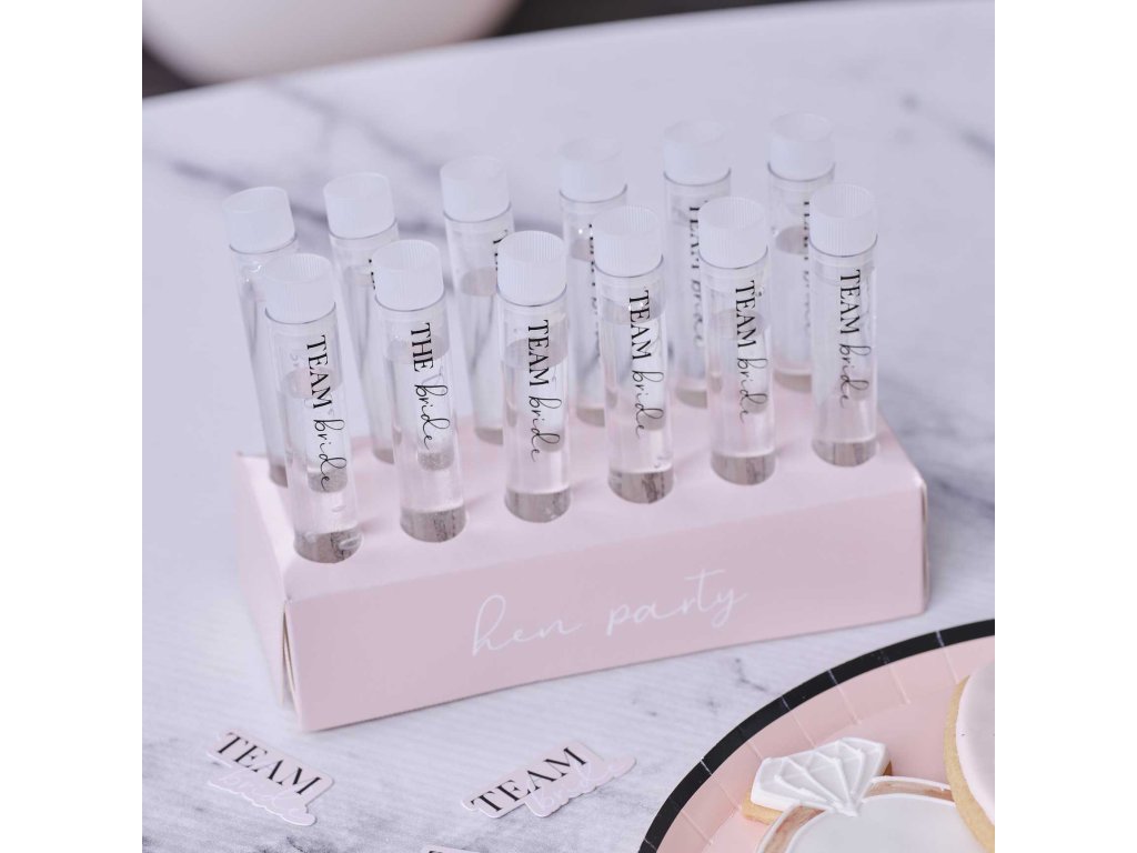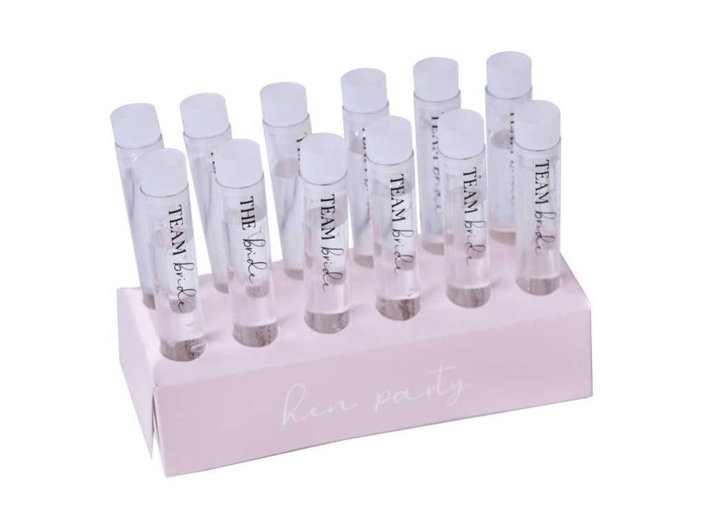 - csomagolás tartalma : 1 x állvány, 11 x kémcső Team Bride felirattal, 1 x kémcső The Bride felirattal