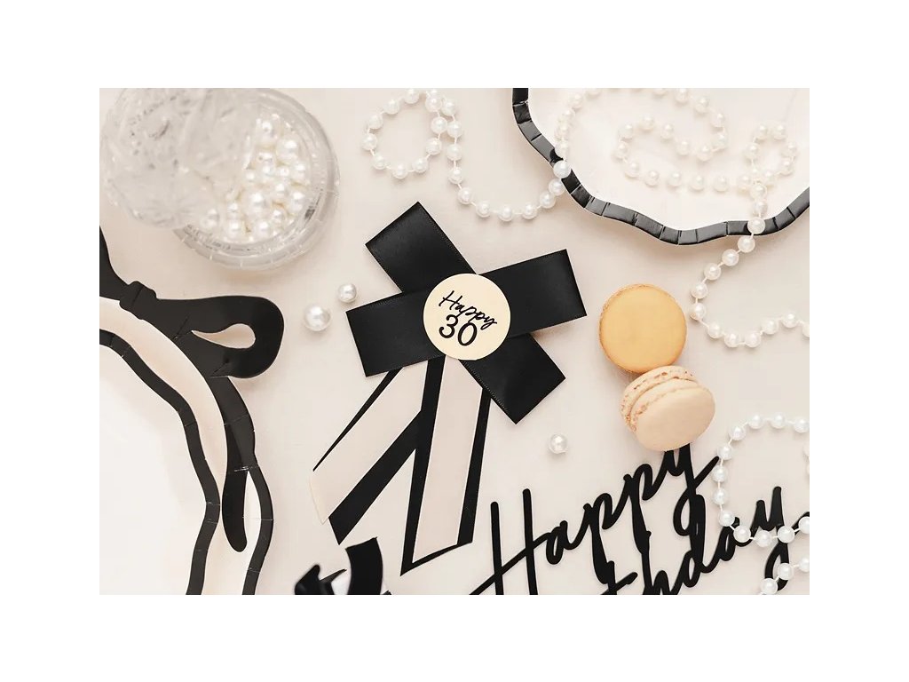 Harminc a nyakán? Ez bizony egy igazi ünneplést kíván! Ezzel a krém-fekete kokárdával mindenki tudni fogja, ki a mai este főszereplője. Tűzze a mellkasára, egy ajándékra vagy akár a tortára (de vigyázzon a tejszínhabbal!), és mutassa meg mindenkinek, hogy a 30 csak egy szám – méghozzá jó kerek szám!
