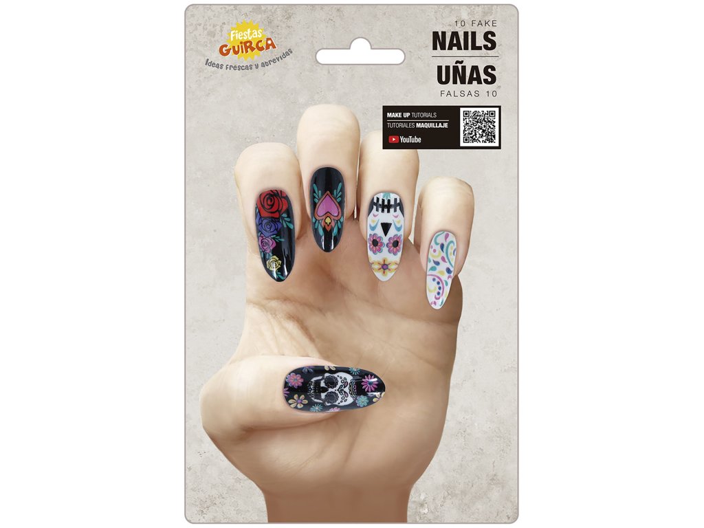 A farsangi vagy Halloween jelmeze hitelesebbnek tűnhet az olyan kiegészítőknek köszönhetően, mint például ezek a Halloween körmök. Ezek a körmök kihagyhatatlan kelléke minden Catrina témájú rendezvénynek vagy partinak.