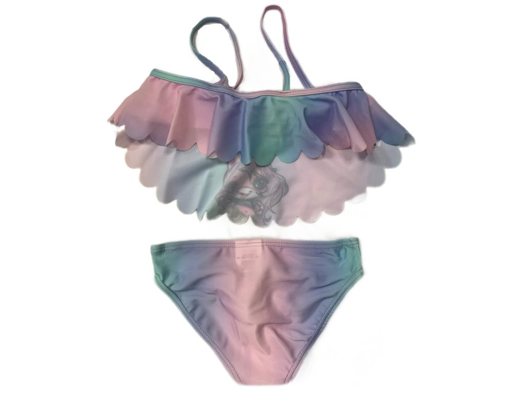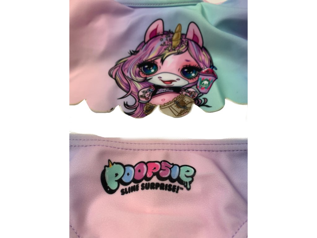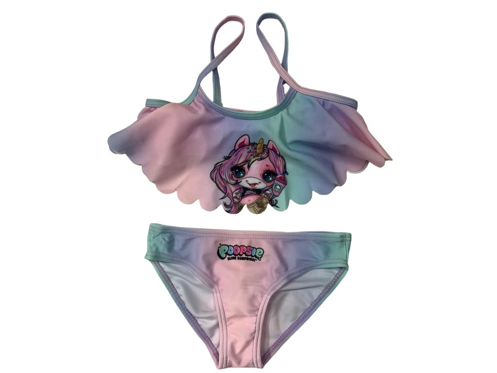 Tengerhez vagy akár medence mellé ebben a gyönyörű színes fürdőruhában. A kétrészes fürdőruha   Poopsie lenyomattal biztosítja, hogy kényelmesen és stílusosan fogják érezni magukat a lányok.