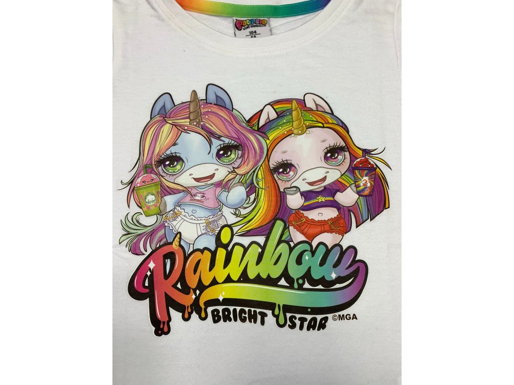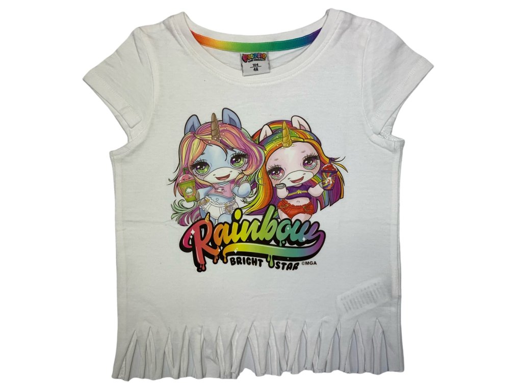 Színes ruhadarab Poopsie lenyomattal lehetővé teszi, hogy a lányok is kényelemes ruhát válasszanak akár sportoláshoz vagy alkalmi viselethez. Trikó rövid újjal egyszerű modern darab, kombinálhatja elegáns vagy sportosabb öltözékhez, nem hiányozhat a gardróbból.