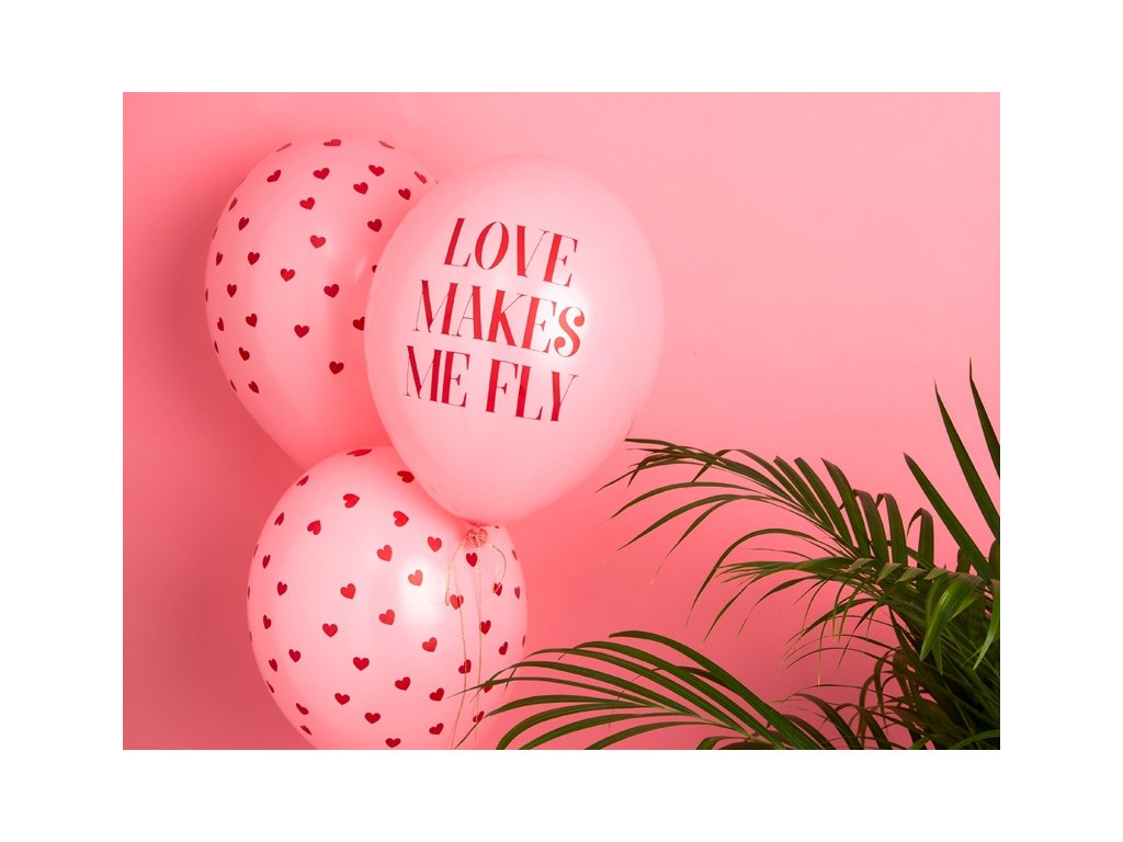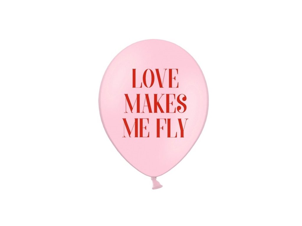 Latex lufi Love makes me fly felirattal. Alkalmas valentin napi ünnepség díszítésére. A lufik kiváló minőségűek és levegővel vagy héliummal felfújhatóak.