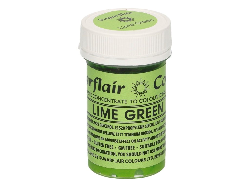 A Lime Green zöld színű zselé egy koncentrált festék, amely alkalmas bevonat vagy modellező anyag színezésére. A zöld színű gél tökéletes természetes témájú tortákhoz. A termék nem tartalmaz glutént és génmódosított alapanyagokat, vegánok és vegetáriánusok számára is alkalmas.