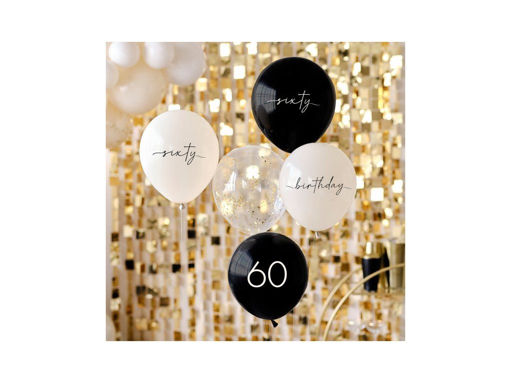 A fekete-fehér színű lufik gyönyörű fényűek és elegáns benyomást keltenek. A születésnapi dekoráció fényűző és stílusos benyomást kelt az arany árnyalatoknak köszönhetően.