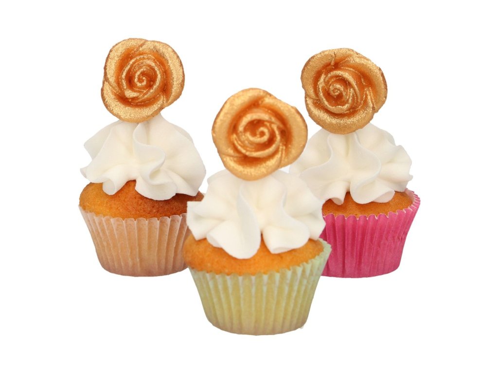 Kész marcipán rózsák, melyek megkönnyítik a torta díszítést, mivel azonnali használatra alkalmasak. Mini torták, muffinok és más apró édességek díszítésére alkalmas. Glutén mentes termék.