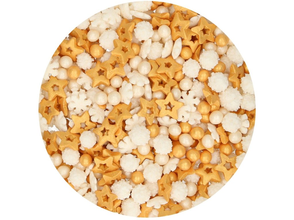 Népszerű, hagyományos cukrászdísz, amely különösen a desszerteken, cake pops-okon, https://www.cookito.sk/cake-pops/fánkokon https://www.cookito.sk/suroviny-na-donuty/vagy krémes süteményeken tűnik ki. Alkalmas a torta oldalának díszítésére. A díszítés ideális minden társasági eseményhez.