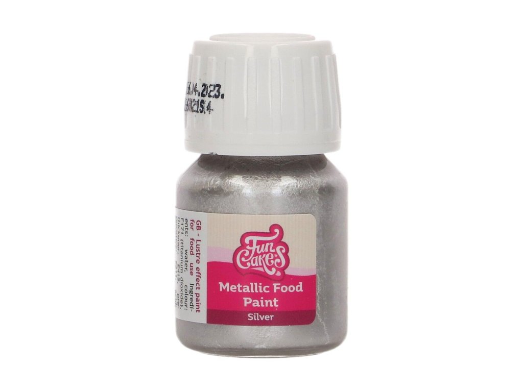 Fémes ezüst színű, ehető színezék, amely elsősorban fondant, marcipánhoz, gumipasztához vagy királyi cukormázhoz alkalmas. A csillogó felület elegáns esküvői torták, valamint macaroonok és kekszek készítésére alkalmas. Sütőben is süthető, a festék gyorsan szárad és nem ragad. A termék vegánok és vegetáriánusok számára is alkalmas, és nem tartalmaz genetikailag módosított alapanyagokat.
