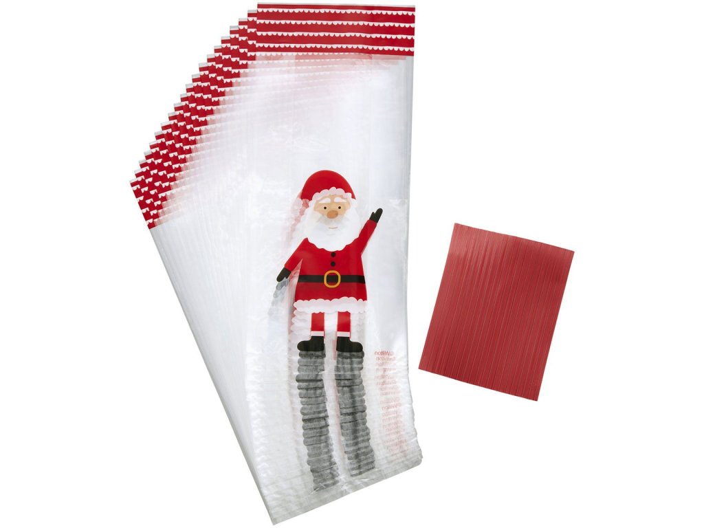 A karácsonyi nyomattal ellátott műanyag zacskó ideális édességek és gyümölcsök vagy ajándékok csomagolására gyerekeknek.