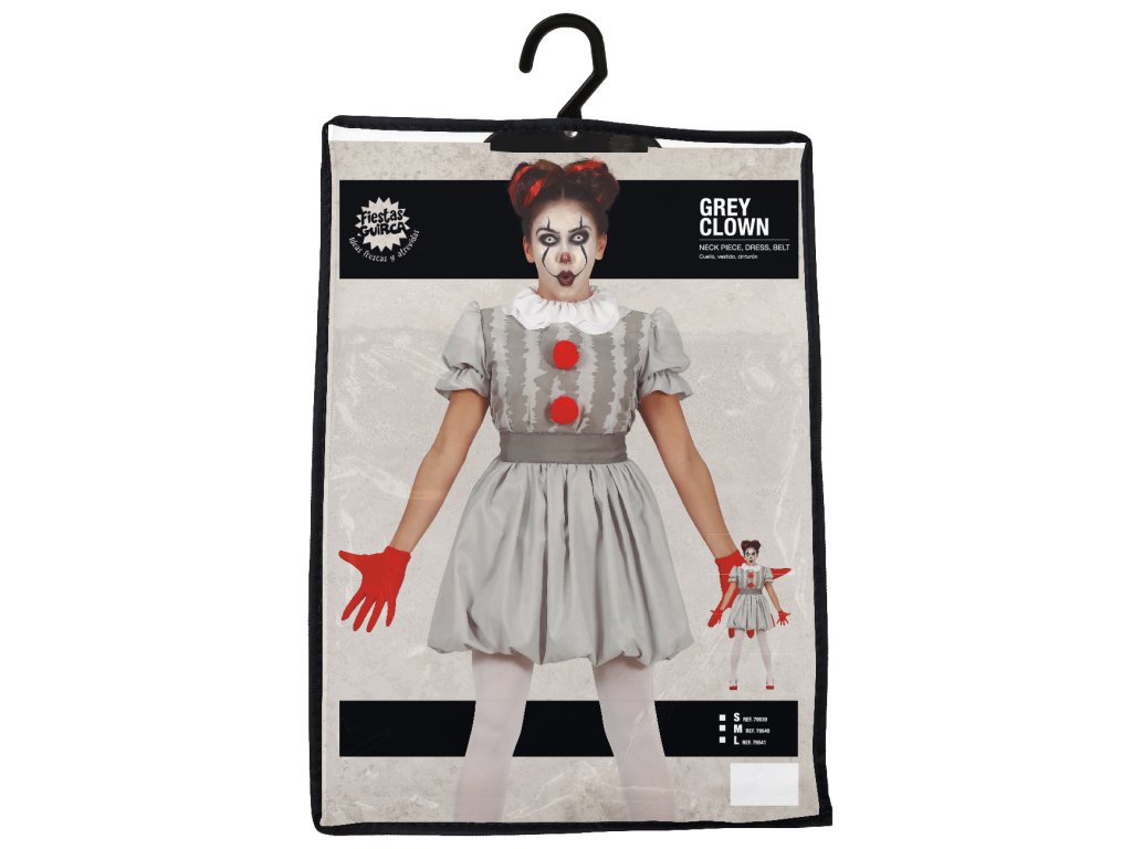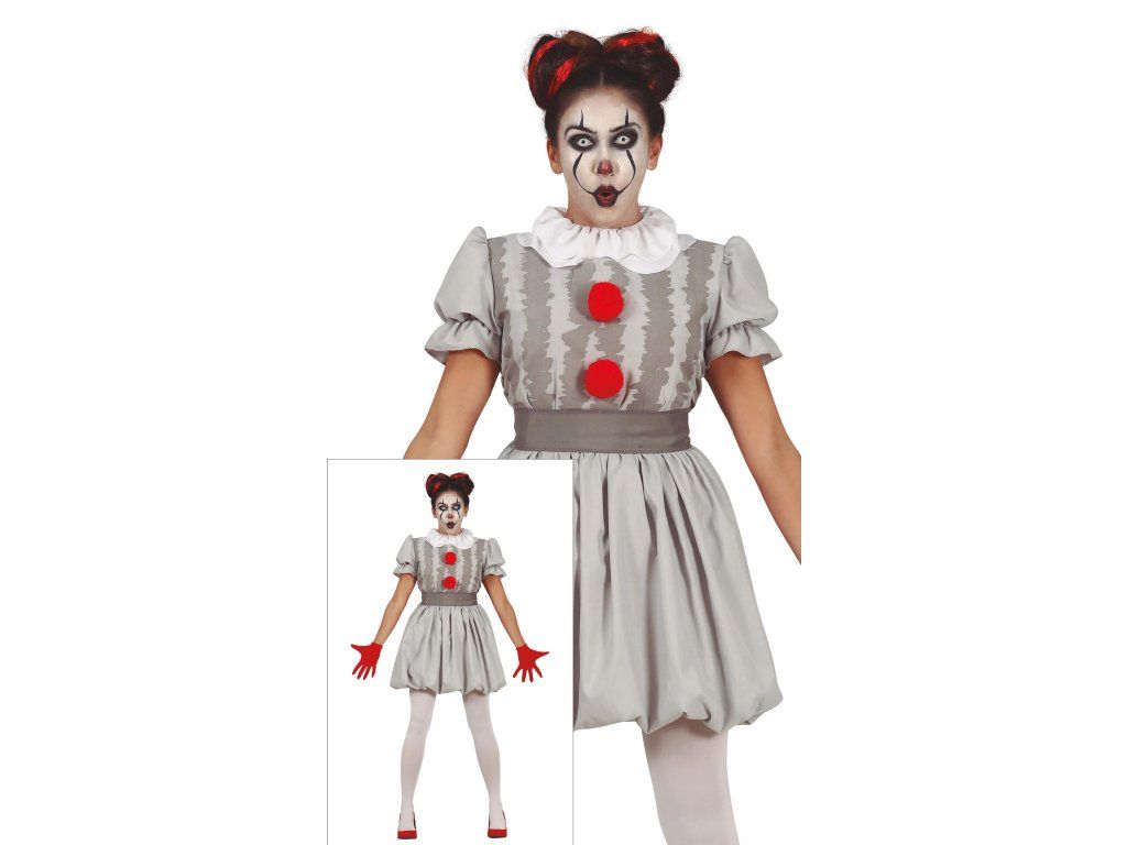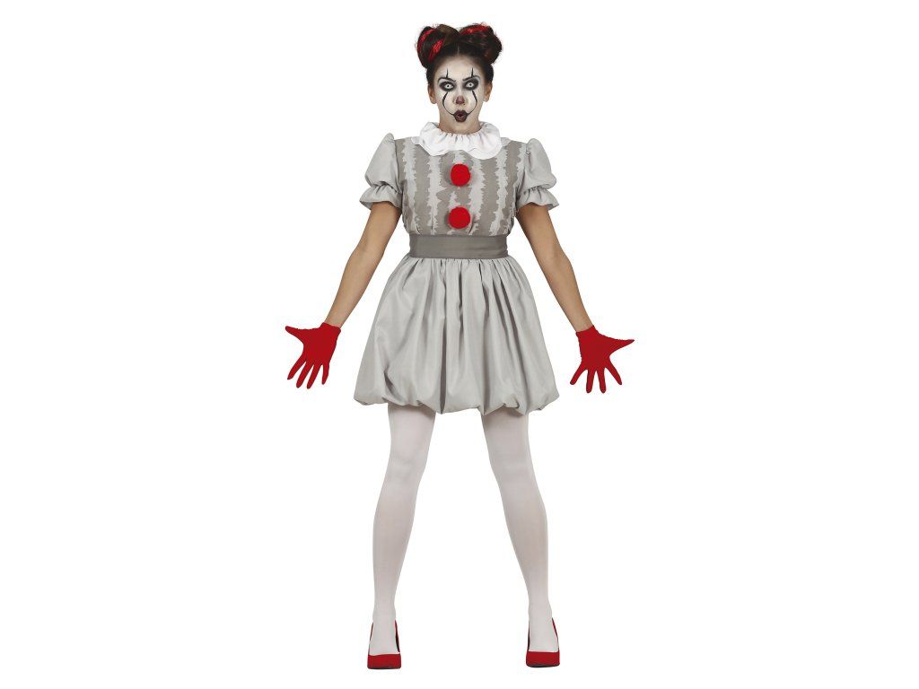 Készüljön egy felejthetetlen Halloweenre vagy farsangra ezzel a vidám és szórakoztató női jelmezzel, amelyet a legendás Pennywise bohóc ihletett! Legyen a buli sztárja, és nevettesse meg barátait egy eredeti jelmezzel, amely garantáltan magára vonja a figyelmet. Ez a jelmez ideális minden bátor hölgy számára, aki szereti a szórakozást, a nevetést, és nem fél kitűnni a tömegből. Öltözz ebbe a jelmezbe, és élvezze a Halloween partit vagy a farsangot sok nevetéssel, tánccal és remek hangulattal!