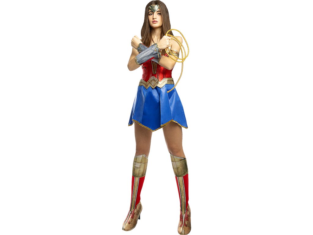 Bemutatjuk a Wonder Woman jelmezt, amely átváltoztat téged egy szuperhősnővé lenyűgöző stílussal! Ez a jelmez mindent tartalmaz, amire szükséged van a világ megmentéséhez, miközben remekül is nézel ki. A ruha szoknyával és rövidnadrággal készen áll a cselekvésre, míg az öv és a karpántok extra stílust adnak a megjelenésedhez. A szilikon pántok biztosítják, hogy minden a helyén maradjon, még akkor is, ha éppen a gonosz ellen küzdesz. A tiara királyi megjelenést kölcsönöz, a cipővédők pedig tökéletesen kiegészítik a szuperhős jelmezedet. Kapható méretekben: