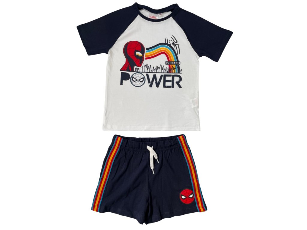 A színes divatdarabok lehetővé teszik a fiúknak, hogy kényelmes ruhát válasszanak eredeti Pókember mintával. A rövid újjú póló és rövidnadrág egyszerű trendi darab; hogy elegánsabb vagy sportszerűbb kiegészítőket kombinálsz-e velük; biztosan nem hiányozhat  a gardróbból.