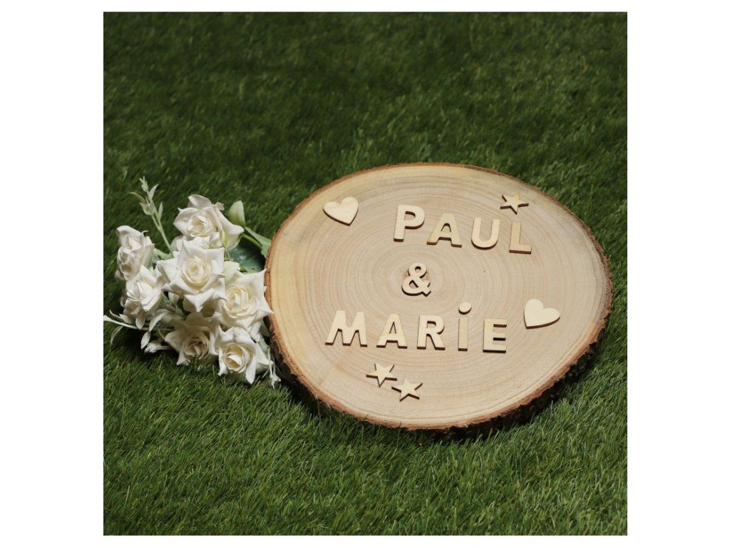 Készítsen egyedi feliratot öntapadó fa betűkkel. Ezek a betűk ideális megoldást jelentenek üdvözlő táblákhoz, személyre szabott dekorációkhoz vagy helyek kijelöléséhez különböző rendezvényeken. A kiváló minőségű fának és a precíz megmunkálásnak köszönhetően elegánsnak és természetesnek tűnnek, egyedi megjelenést kölcsönözve rendezvényének.