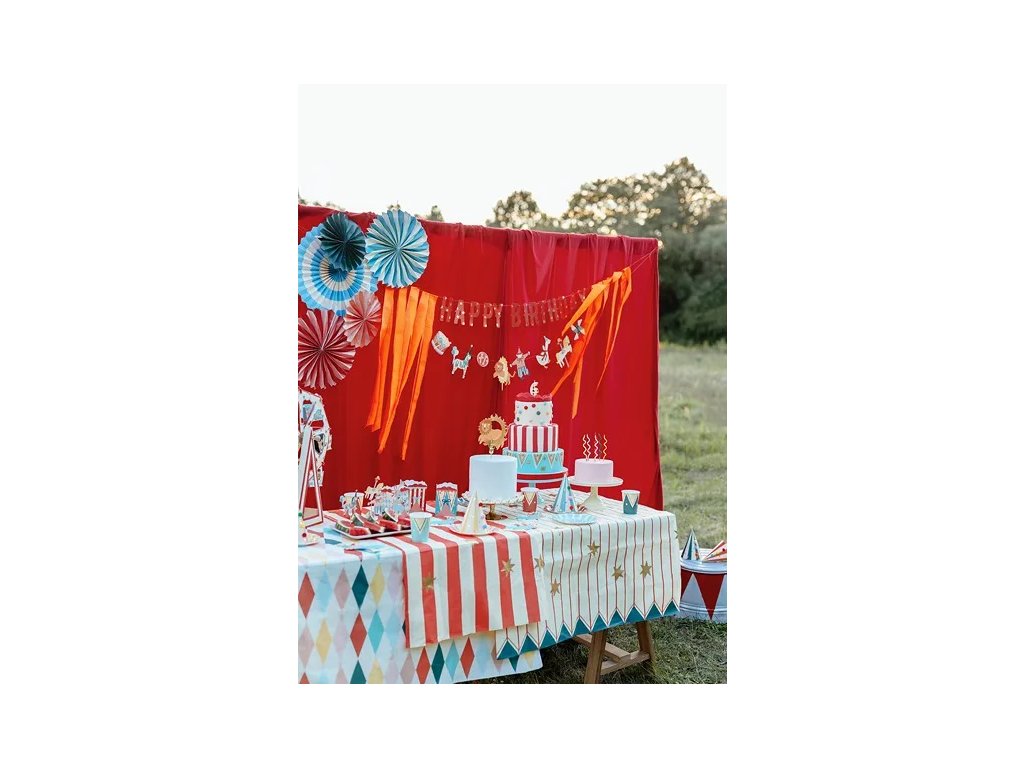 Pörgesse fel a partit, mintha egy igazi cirkuszban lenne! A Cirkusz abrosz, csíkokkal és csillagokkal (180 x 120 cm) belépő a színek, a nevetés és a végtelen szórakozás világába. Csak terítse le az asztalra, és máris olyan érzése lesz, mintha bármelyik pillanatban kiugrana egy bohóc a tortából, vagy megindulna a körhinta! A színes csíkok és csillagocskák feldobják bármelyik születésnapi partit, gyerekzsúrt vagy cirkuszos estét – még a lufik is irigykedni fognak. Készüljön fel a jókedv hullámára – ezzel a abrosszal még az asztal is nevetni fog a partin!