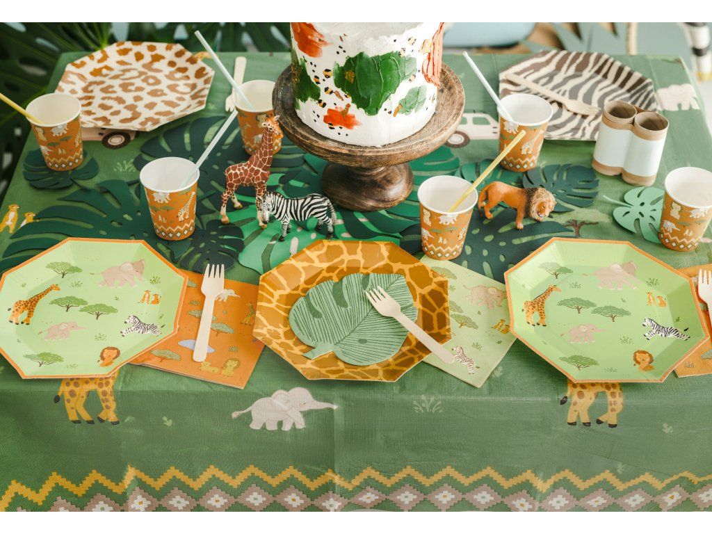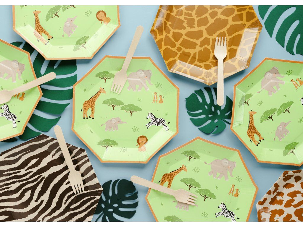 A Szafari papírtányérok 23 cm átmérővel praktikus, egyszer használatos tányérok vidám mintával, ideálisak bulikra, gyerekzsúrokra, piknikekre vagy más alkalmakra. A csomag 6 darab tányért tartalmaz, amelyek erős papírból készültek, és alkalmasak hideg valamint enyhén meleg ételek tálalására is. A színes Szafari dizájnnak köszönhetően feldobják az asztalterítést, és megkönnyítik a gyors takarítást az ünnepség után.