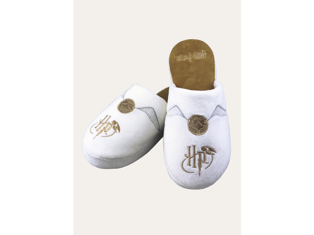 Ezek a fehér papucsok aranycikesz mintával biztonságba helyezik a csúszásmentes talprésznek köszönhetően, illetve kitűnően megfelelnek, ha pihenését tölti egy jó J.K. Rowling könyv vagy film mellett.