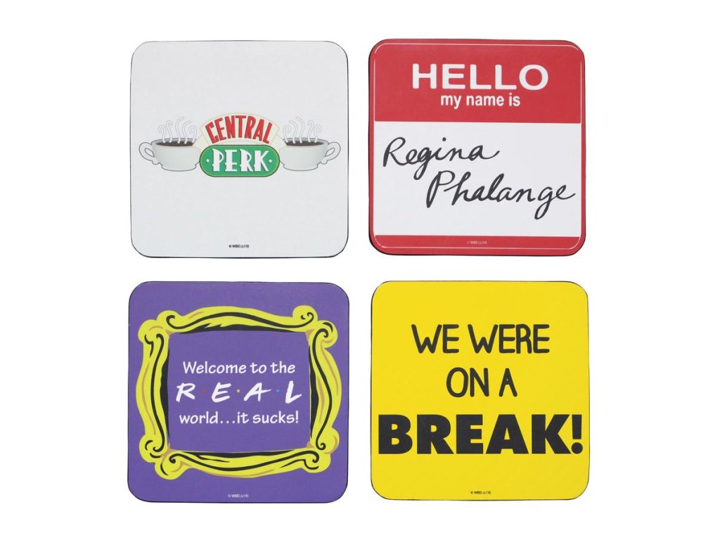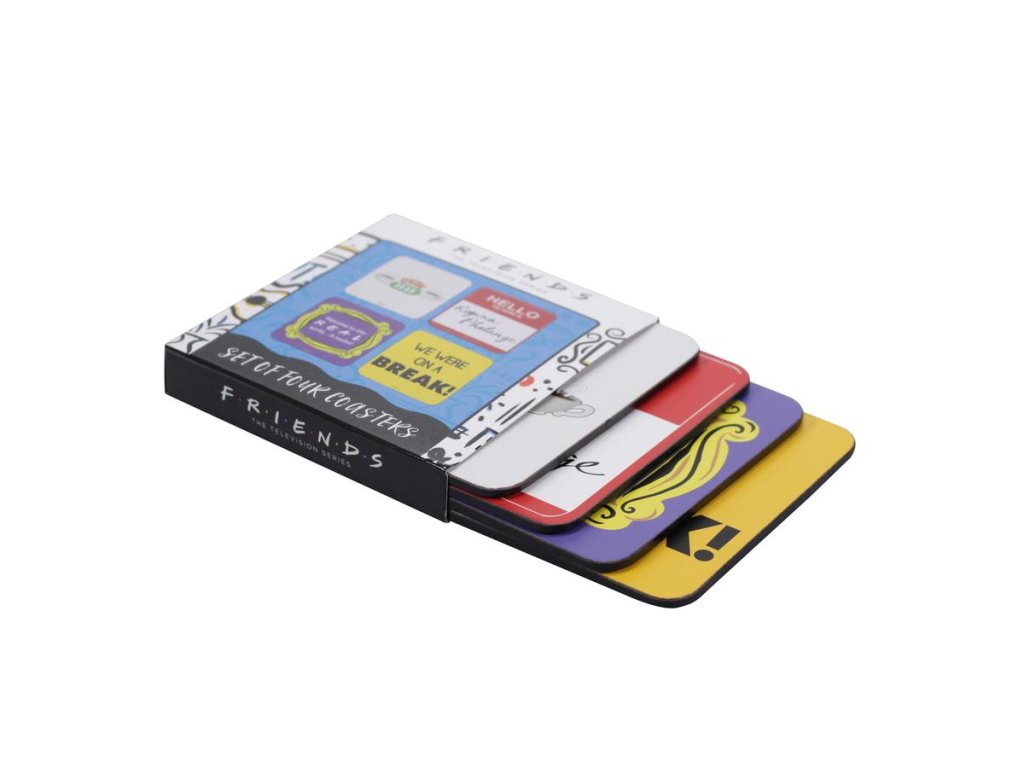 Négy parafa alátét készlet csészék vagy bögrék alá a Friends népszerű sorozat motívumaival.