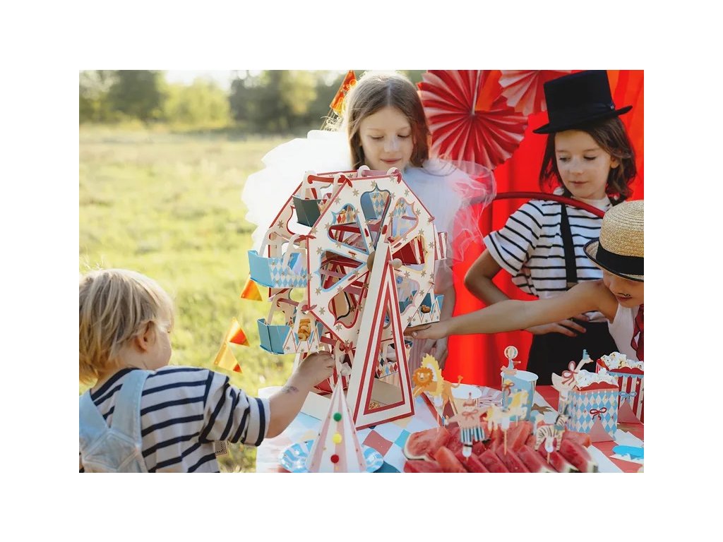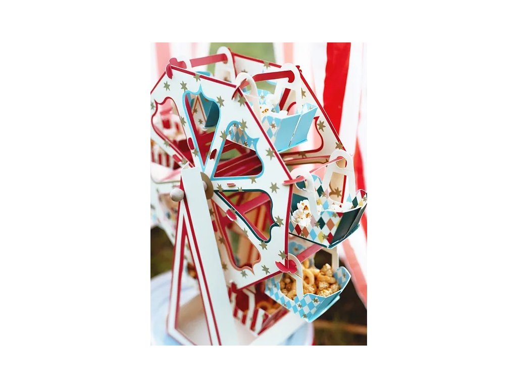 Készüljön fel egy igazi ízutazásra! Ez az egyedi, óriáskerék alakú snack tartó állvány minden bulit a szórakozás magaslatára emel. Csak töltse meg édességekkel, gyümölcsökkel vagy sós finomságokkal, és a partiból igazi vidámpark lesz! A gyerekek imádni fogják, a felnőttek meglepődnek, és mindenki kíváncsi lesz, mit rejt a következő „kocsi”. Ezzel az állvánnyal a parti tele lesz nevetéssel, színekkel és felejthetetlen élményekkel. Pörgesse fel az eseményt stílusosan, és kínáljon olyan harapnivalókat vendégeidnek, amelyekkel ritkán találkozni!