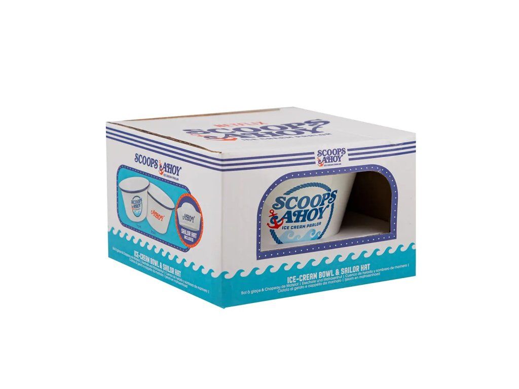 Készülj fel egy nagy adag szórakozásra a tálka + sapka Scoops Ahoy szettel a Stranger Things sorozatból! Ugorj be Hawkins világába, tedd fel a matrózsapkát, és szedj kedvenc fagyidat (vagy popcornt, hiszen ki ellenőrizné?) a tálkába. Ez a szett tökéletes minden rajongónak, aki szeretne átélni egy kis kalandot a legendás Scoops Ahoy fagyizó hangulatából.