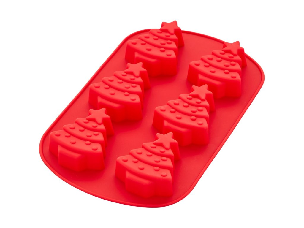 A 6 db, fa alakú mini sütihez való szilikon formával egy modern sütési stílust varázsol karácsonyra. A formával eredeti desszerteket készíthet, amelyeket aztán bársonydíszítéssel, bevonattal, szórással vagy dióval kombinálhat. Készítsen mini fákat, amelyekkel díszítheti a tortákat, vagy tegye egy takaros dobozkába, és ajándékozza őket.