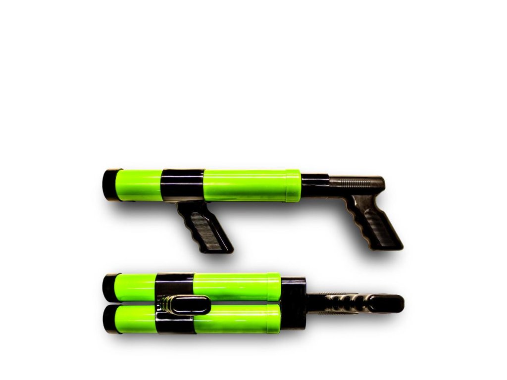 Ez a Szín lövellő pisztoly teljesen manuális, elég megtölteni festékkel és a szórakozás megkezdődhet.