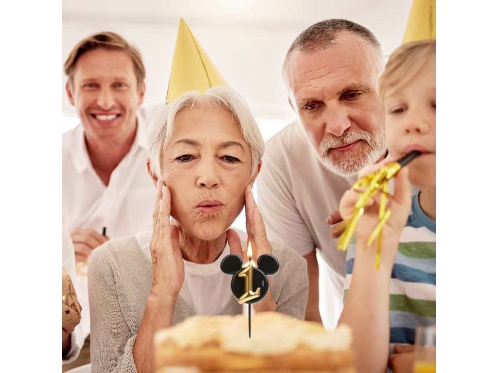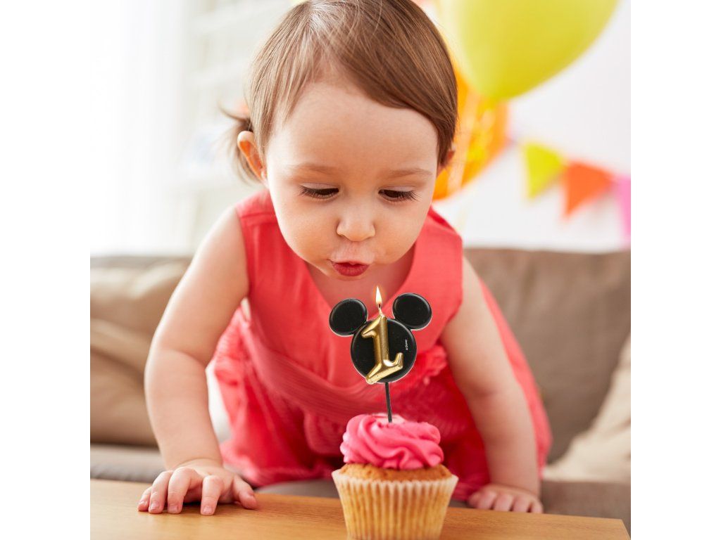 Stílusos és egyedi gyertya 1-es számmal, ikonikus Mickey Mouse fej formájában! A fekete és arany elegáns kombinációja luxus megjelenést kölcsönöz a tortáknak, és örömet szerez a Disney rajongóinak, legyenek akár kicsik, akár nagyok.