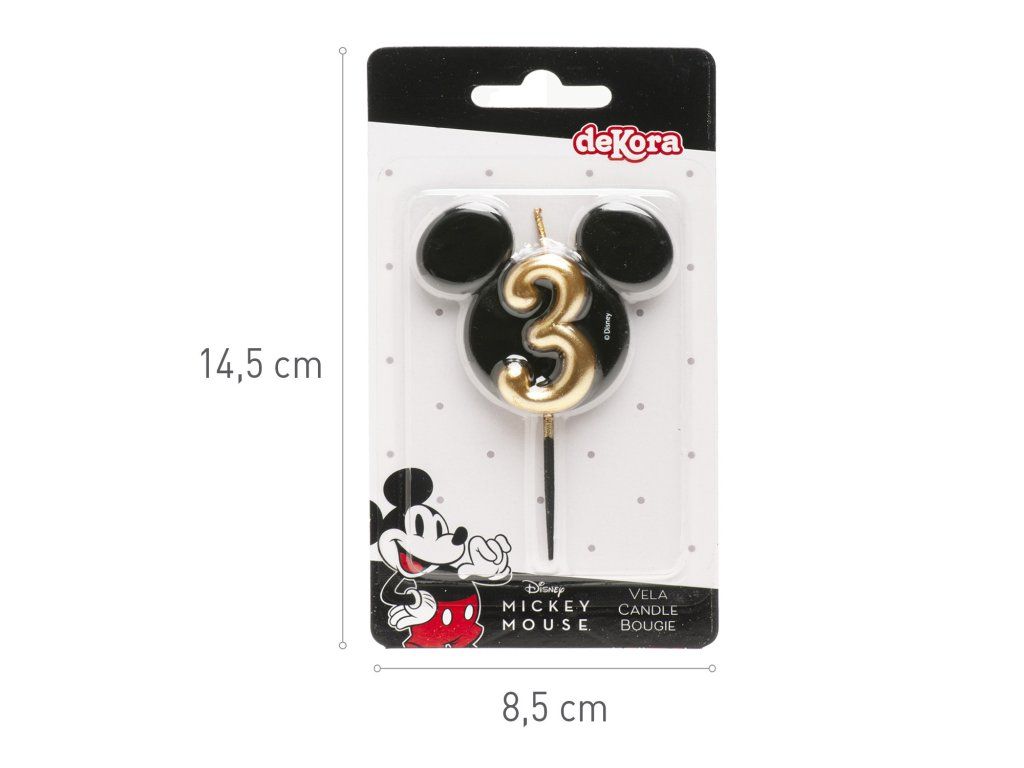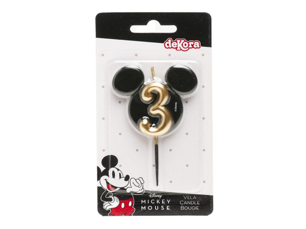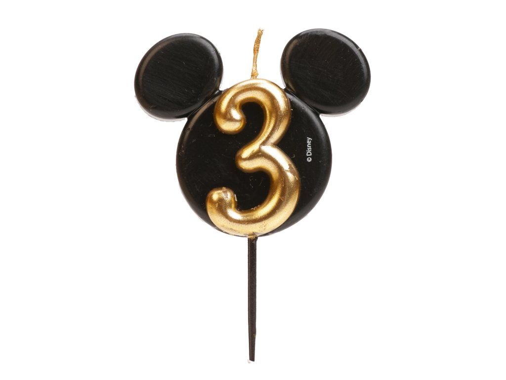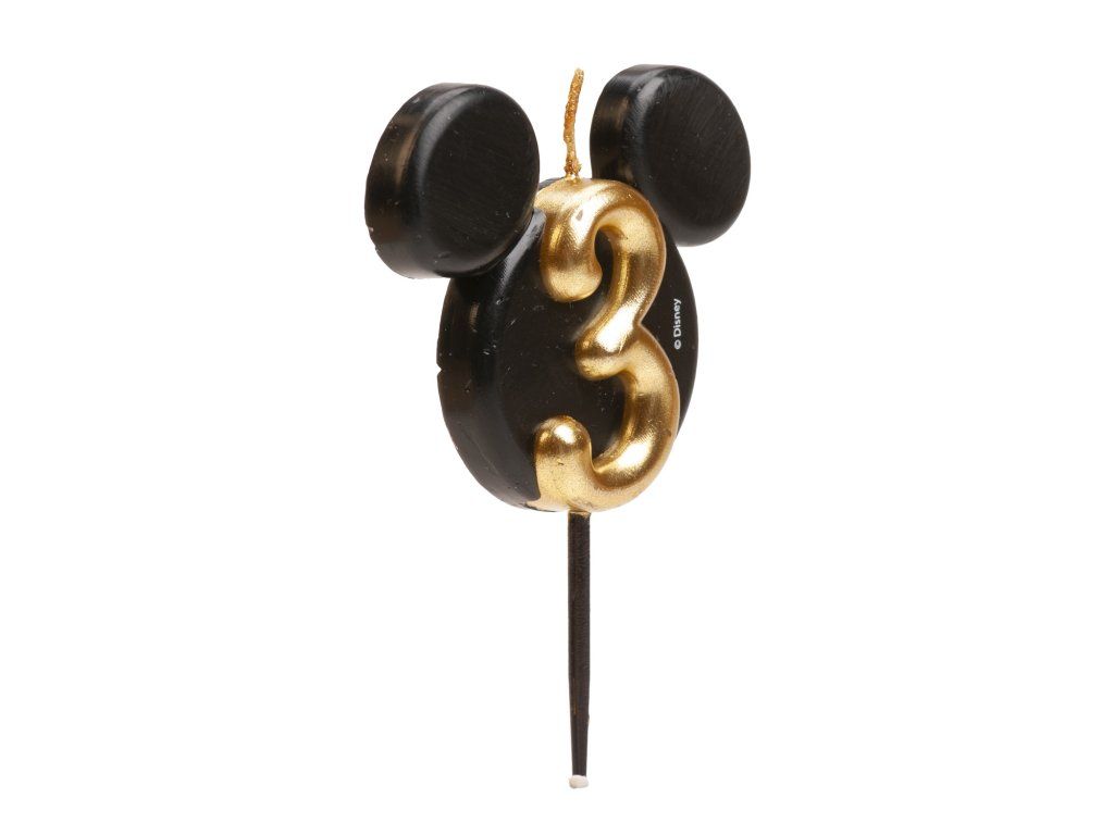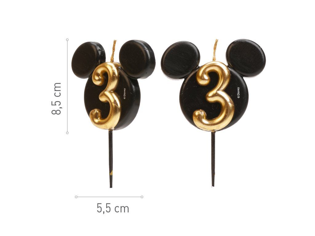 Stílusos és egyedi gyertya 3-as számmal, ikonikus Mickey Mouse fej formájában! A fekete és arany elegáns kombinációja luxus megjelenést kölcsönöz a tortáknak, és örömet szerez a Disney rajongóinak, legyenek akár kicsik, akár nagyok.