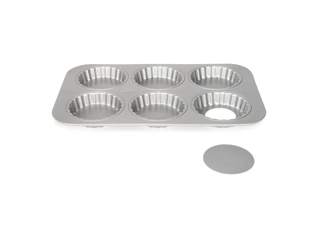 Torta forma hullámos széllel, mellyel könnyedén készíthet házi készítésű tartaleteket, valamint egyéb édes és sós desszerteket. Használja a formát különféle típusú és ízű cupcakes készítéséhez. A forma kivehető alja jobb kezelhetőséget biztosít a sütemény eltávolításakor.