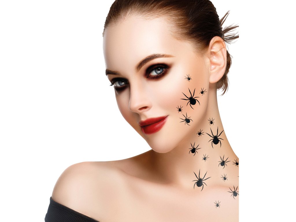A farsangi vagy halloween jelmeze hitelesebbnek tűnhet a különféle kiegészítőknek, például ennek a Pókok motívumú tetoválásnak köszönhetően. Ez a kiegészítő alkalmas különféle farsangi jelmezekhez, a használatát természetesen au elkébzelésére bízzuk.