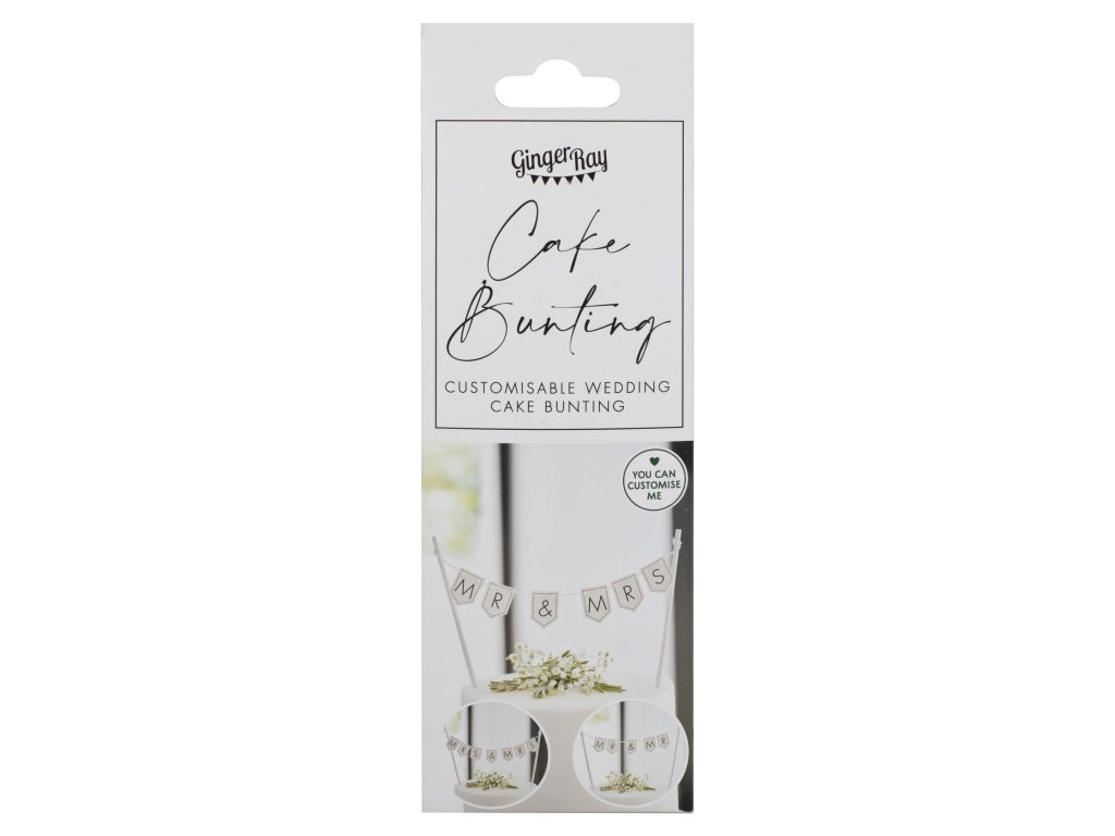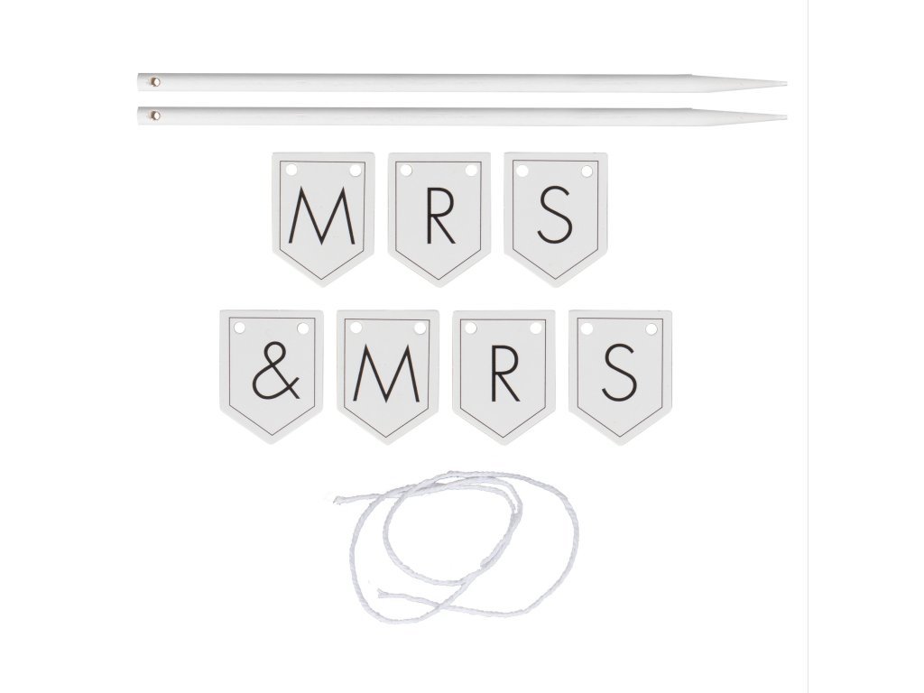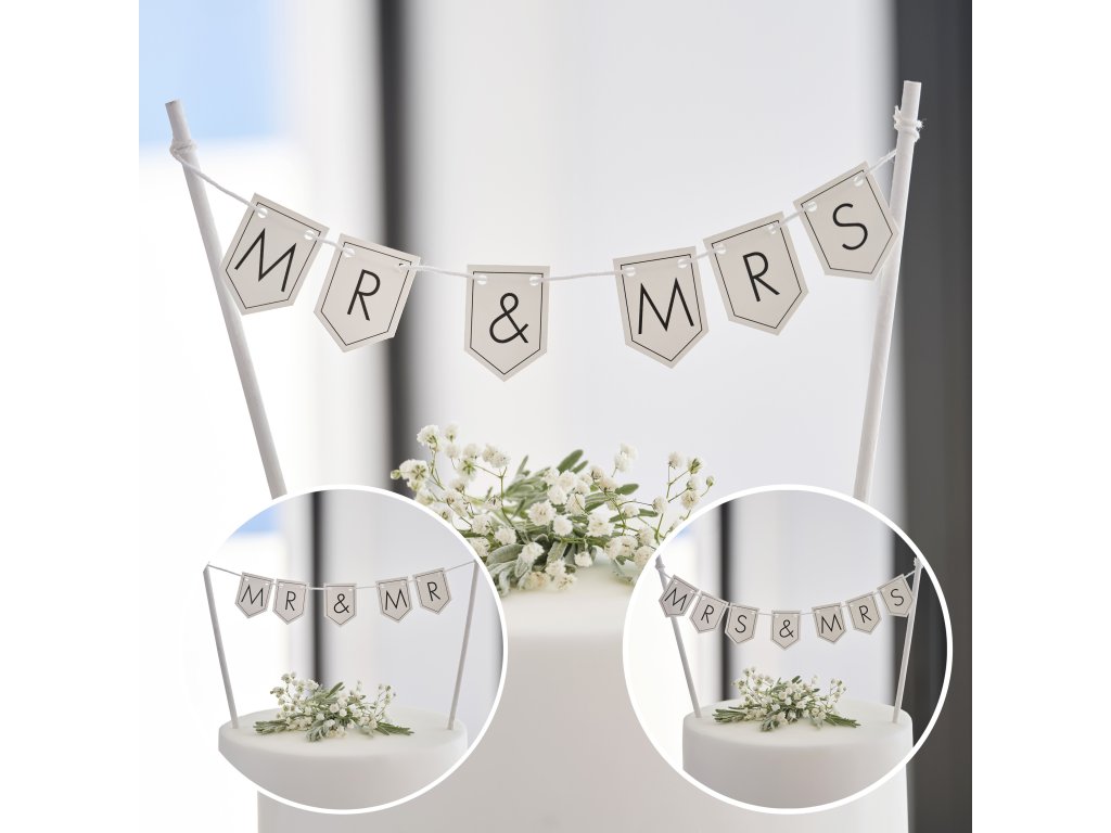 Az egyedi, fehér kivitelű dekoráció a "MR & MRS" feliratú zászlók-kal ideális kiegészítője az esküvői tortának. Ennek az elegáns dekorációnak köszönhetően még egy hétköznapi esküvői tortából is egyedi torta varázsolható, amelyet mindenki megcsodál.