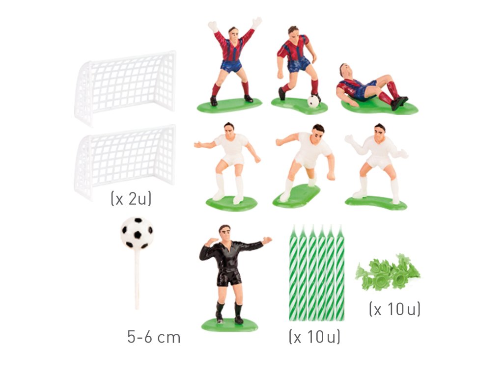 Készüljön fel a gólos ünneplésre! Focis tortadíszítő készletünk gyertyákkal minden desszertet pályává változtat, amely készen áll a nagy meccsre. Rugja el az unalmat, és hagyja, hogy tortája ragyogjon! Ezzel a készlettel örömteli, nevetéssel és édes gólokkal teli focis ünnepet varázsolhat. A csomag tartalmazza: - eredeti focis gyertyák, - kapuk és játékosok, - tematikus tortadíszek beszúráshoz.