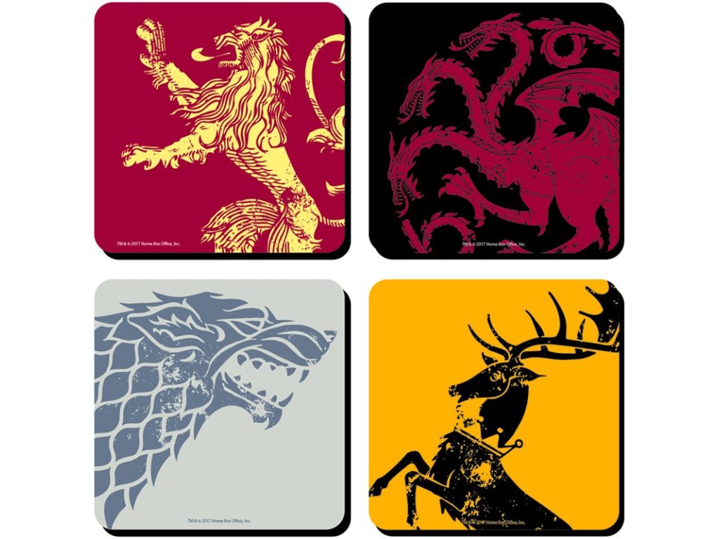 Parafa poháralátét készlet a házak jeleivel ellátva: Stark, Targaryen, Lannister és Baratheon. Fogyassza az italát közösen a kedvenc családjával.
