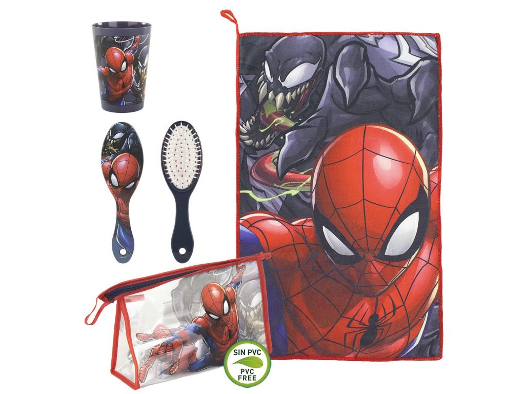 Kozmetikai és higéniai kellékek a Marvel Pókember dizájnú átlátszó cipzáras táskának köszönhetően, gyermeke minden kozmetikumát gondosan tárolja.