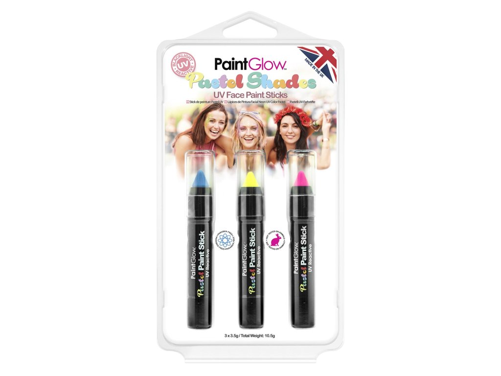 Szeretne csillogó party sminket készíteni? Próbálja ki ezt az arcra vagy testre könnyebb felvitelt lehetővé tevő UV rudak szettet. A szett 3 különböző színű glitter gélt tartalmaz, melyekkel egyedi sminket készíthet. A glitter gélek arcra vagy testre történő festésre alkalmasak. Dermatológiailag teszteltek, ezért a bőrét nem kell féltenie. A termékek Nagy Britanniában készültek.