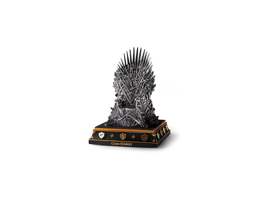 A Trónok harcából ismert vas trón hiteles mása a különböző családok címereivel ellátva. Kiváló ajándék Trónok harca rajongók számára.